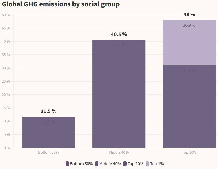 - 2019年全球有48%的排量是最富的10%的群体造成的,而最贫穷的50%的人口只贡献了12%的排量。