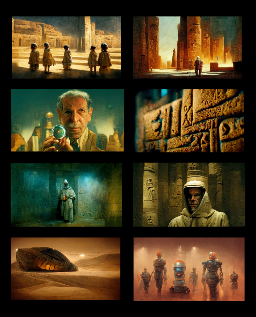 剧本筹备阶段,最直接利用AI的方式就是产出分镜头故事板。原腾讯影业副总裁陈洪伟表示,他目前正在跟进的项目,分镜故事板的产出就完全交给了Midjourney。最终效果来看,Midjourney绘制的故事板不输普通的分镜师,直接帮助陈洪伟的项目省下了几十万元的成本。