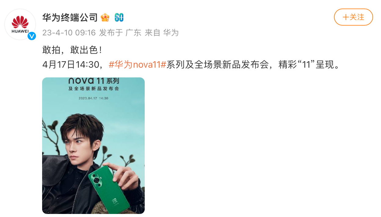4月10日消息,华为将于4月17日14:30举行华为nova11系列及全场景新品发布会。