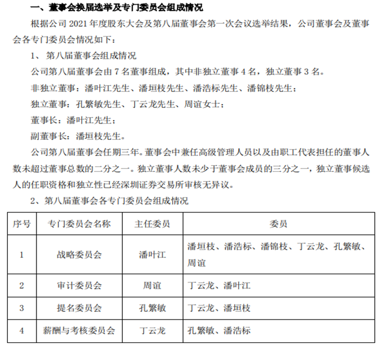 值得注意的是,潘叶江成为控股股东后,潘家人对帝股份董事会控制在进一步渗透。2022年5月,换届时吴刚离任。接替吴刚的,是另一位“潘家人”潘浩标的女儿潘楚欣。