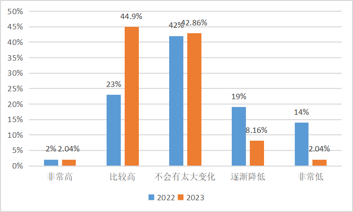 “前景”维度经过前几年的下降之后,今年也迎来了新的上升。2023年是贯彻落实党的二十大精神,以中国式现代化全面推进中华民族伟大复兴的开局之年。专家们对未来的预期比较乐观,但三年疫情带来的影响还未全部消除,因此对于2023年以及更长远市场恢复情况仍需保持冷静的态度。