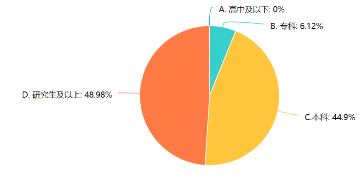 受访专家的文化程度普遍集中在本科以上,尤其是研究生及以上学历占48.98%,本科学历占44.9%。