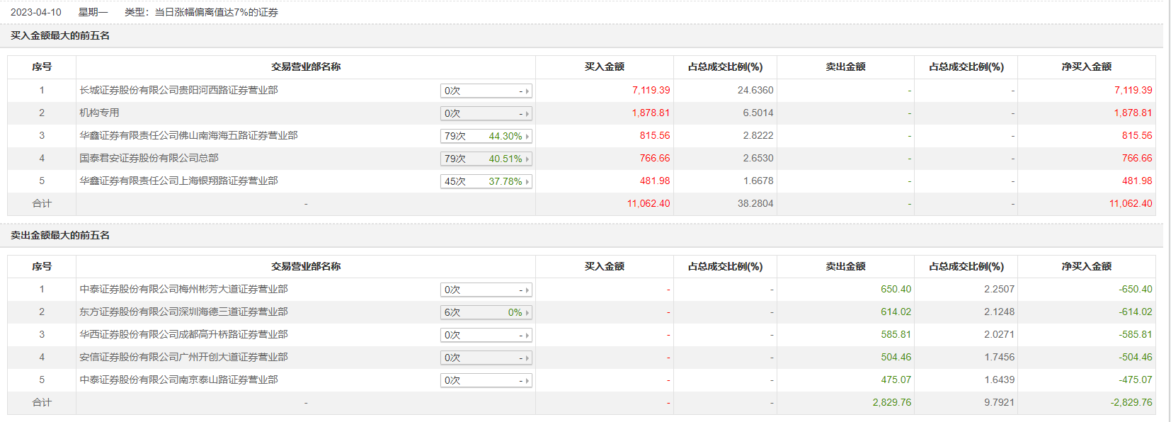 具体来看,机构合计净买入1878.81万元。此外,长城证券贵阳河西路证券营业部、华鑫证券佛山南海海五路证券营业部分别买入7119.39万元、815.56万元;中泰证券梅州彬芳大道证券营业部、东方证券深圳海德三道证券营业部分别卖出650.40万元、614.02万元。