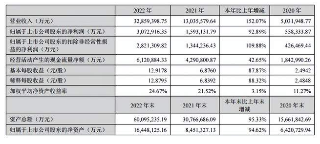而宁德时代赚得盆满钵满,2022年营收实现首次突破3000亿,达到3286亿元,同比增长152.07%;归母净利润为307亿元,同比增长92.89%。