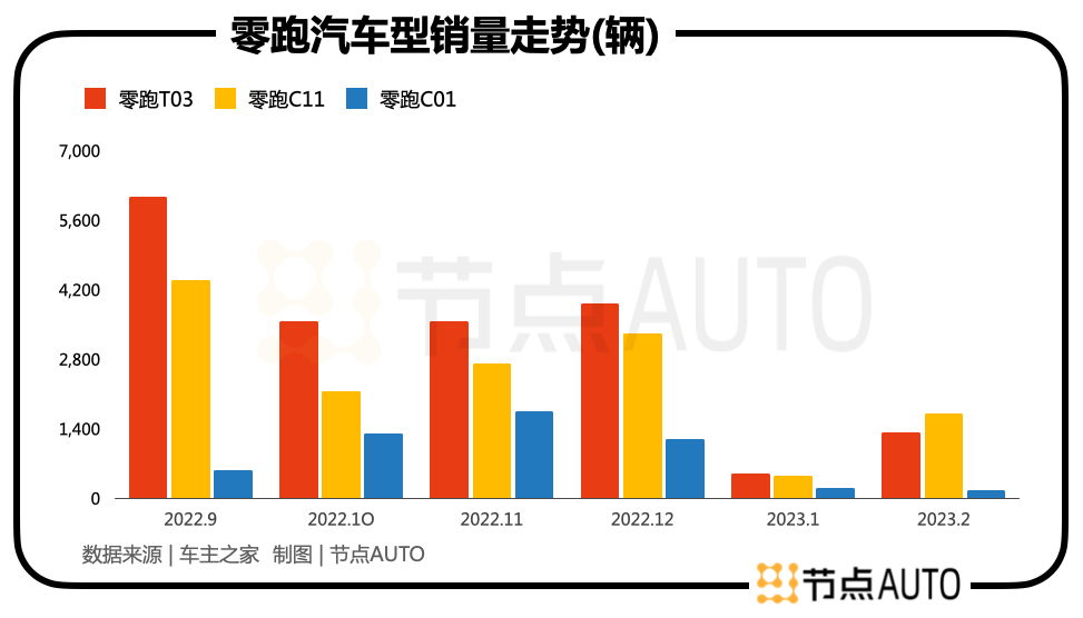 今年1月,T03和 C11的销量分别为501辆、426辆。2月,零跑的销量结构出现了品牌自交付以来的里程碑式变化,C11的销量达到1712量,占比超过了T03。