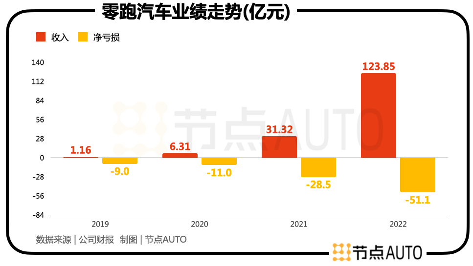 如果说新势力都在走钢丝,那零跑汽车脚下的钢丝比其他新势力更细一些。在2023年,零跑汽车定下了两个目标,其一是年销量达到20万辆,其二是实现毛利转正。而在2022年,零跑汽车的年销量不到12万辆,毛利率长期为负。