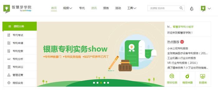简介:公益性专利在线教育平台,汇聚200多名知识产权精英讲师,拥有Webinar直播、课程视频、独家报告、专代考试中心、热点资讯等丰富内容。