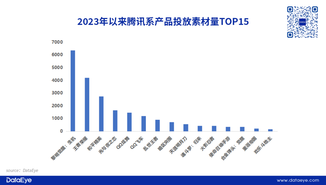 DataEye研究院观察:腾讯游戏在字节系渠道投放大方向已经是放开,但目前仍配合腾讯“降本增效”总方针,所以素材投放量不大。目前腾讯系游戏,并没有大面积投放字节系渠道。