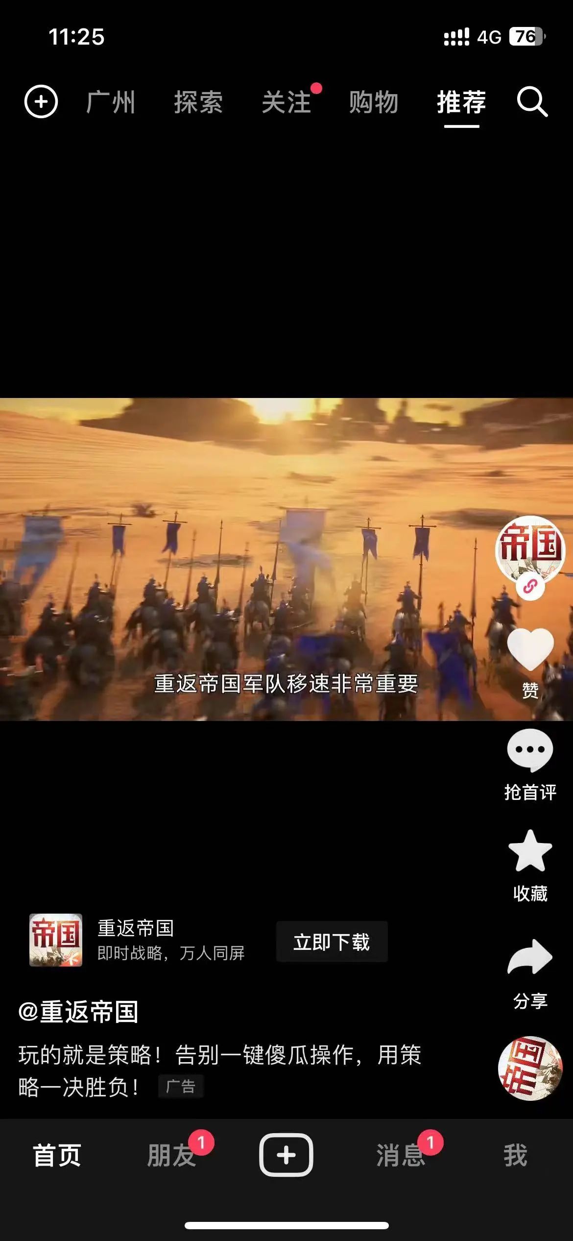 同时,DataEye研究院也在抖音上刷到了《重返帝国》效果广告。