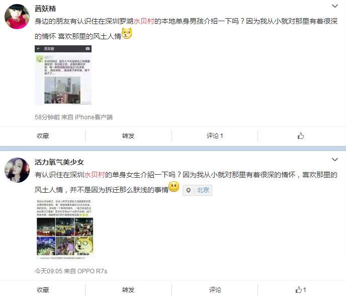 “身边的朋友有认识住在水贝村的本地单身男(女)生介绍一下吗?因为我从小就对那里有着很深的情怀,喜欢那里的风土人情,很值得嫁(娶)的一个地方,并不是因为拆迁款2亿那么肤浅的事情。”