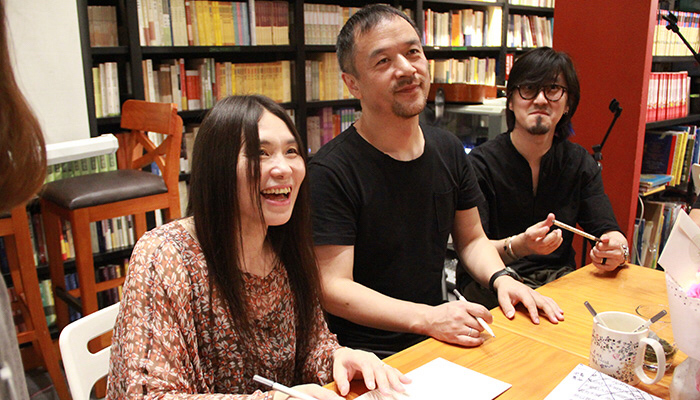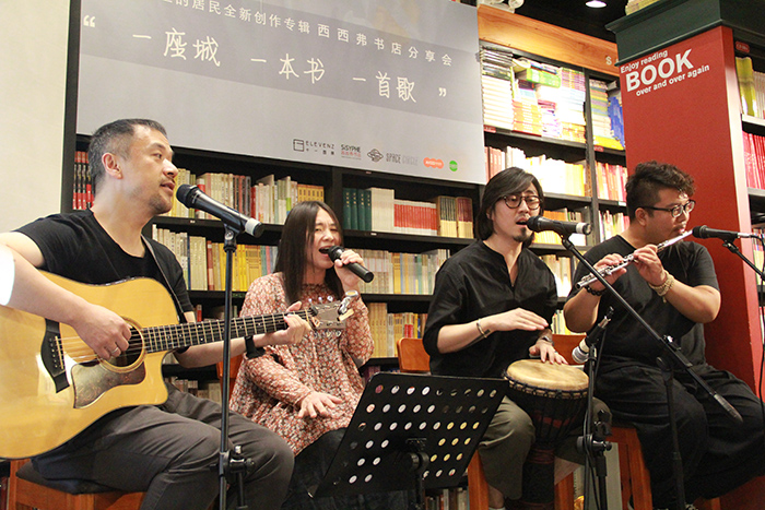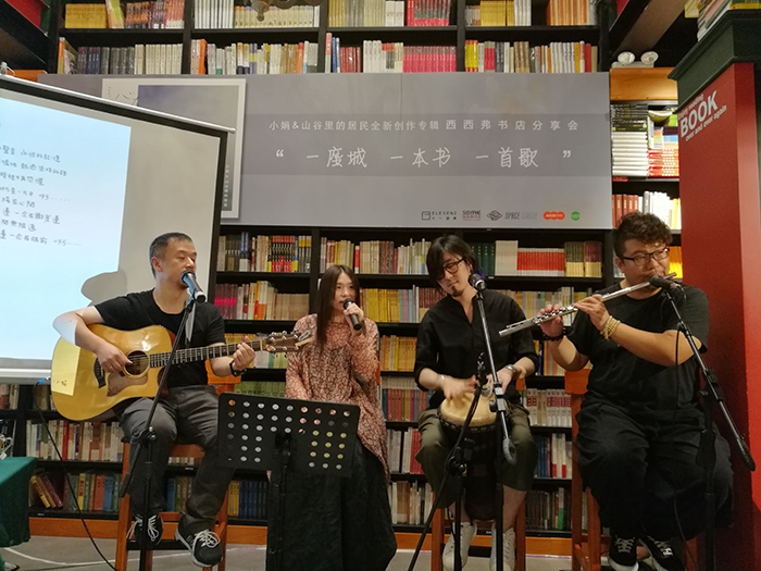 今年9月开始,小娟还在深圳等十个城市展开新一轮的全国巡演,每到一个城市,还提前到当地的书店和乐迷们分享荐书。在炎热的9月,小娟乐队成员来到深圳西西弗书店,小强弹着吉他进场,荒井搀着小娟进来。