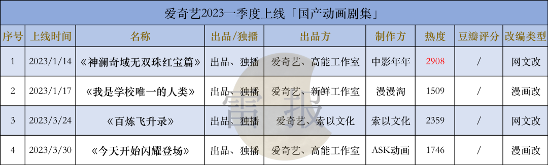 爱奇艺:一季度4部出品动画在平台开播,漫改、网文改各一半