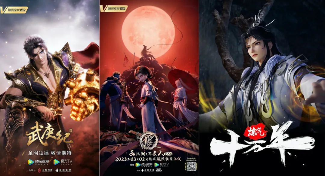 《三国演义第三季》由企鹅影视、银河长兴出品,银河长兴制作,为3D动画,改编自罗贯中同名小说《三国演义》;《武庚纪第四季下篇》为漫改作品,由玄机科技进行制作,作为人气较高的系列作品,在2020年《武庚纪第三季》收官时,该系列的整体播放量就达到了60亿;《画江湖之不良人第六季》也是热门国产动画,由企鹅影视和若森数字出品,若森数字制作,除了统计时热度在几部作品中达到最高,为1.9万,该作的豆瓣评分也是最高,1.95万人打出9.6的高分。该作有关定档的话题还曾登上微博热搜。