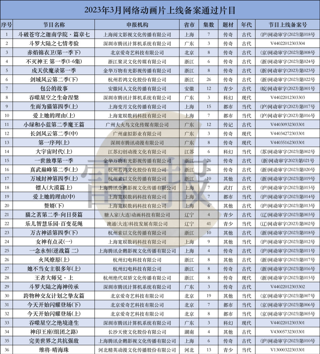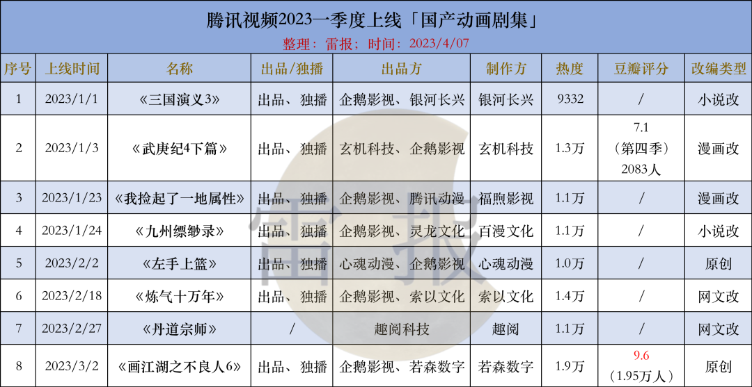 一季度腾讯视频上线8部国产动画新作,出品同时独播的作品为7部,其中有3部为系列续作。