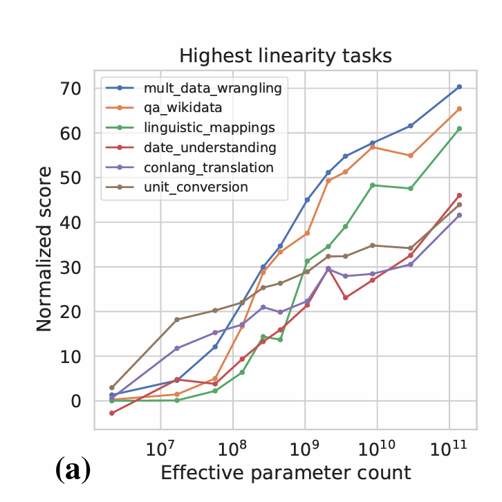 知识密集型任务遵循伸缩法则;图片来源:Google BIG-bench:Beyond The Imitation Game: Quantifying And Extrapolating The Capabilities Of Language Models