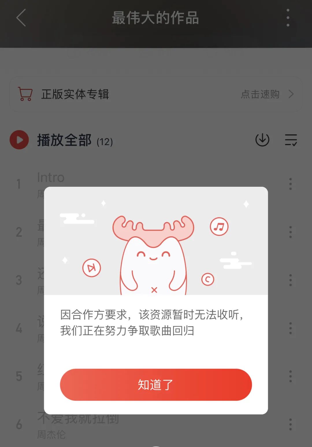 至今,一年半时间倏忽而过,不切APP听歌时代并未到来,打开音乐APP也依然能看到各家缺失的“灰色歌单”。