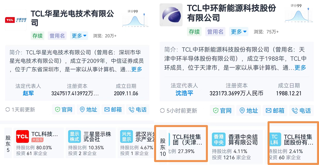 虽然身份都是大股东,但TCL科技在两家公司的股比差异很大,持有TCL华星股比为80%,持有TCL中环股比为29.8%。虽然是兄弟,但五个手指头还不一样长呢。