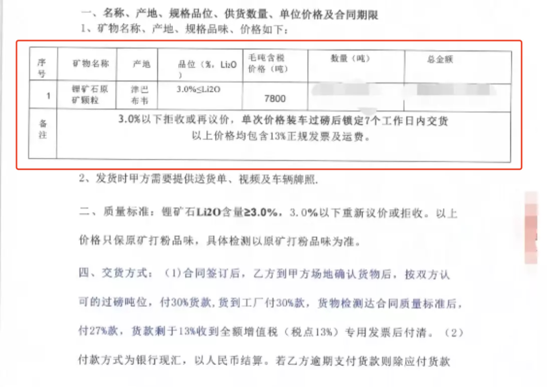 他算了笔账,如果当天看中了一批矿石,谈好价格后,安排货车拉回厂里,工厂再加工成碳酸锂继续取样复测,最终签署合同后才会进行打款。走完这套矿石贸易的常规流程,用邮寄检测最快需要6天。