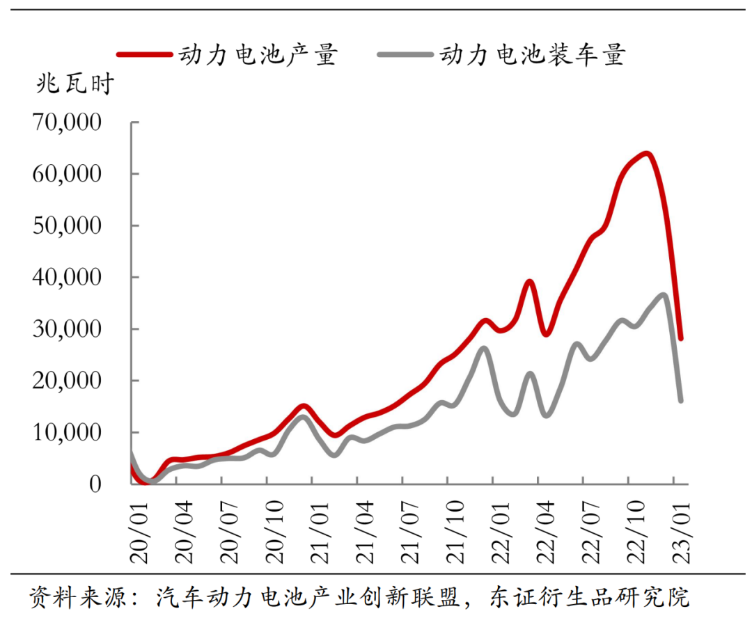 二是2022年动力电池产业已经出现累库现象,即电池装车量远远超过了产量。