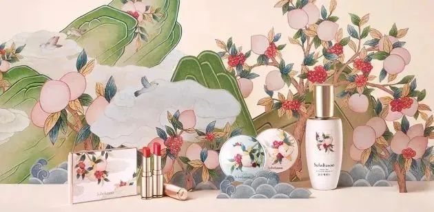 先说雪花秀。在2018年韩流退潮的大环境下,雪花秀看到了国潮的新风口。2018年中国风限定新款——雪花秀武陵桃源限量系列,她换掉了原本素雅不起眼的白色包装,将传统绘画风格与现代主义风格结合,古色古香的中国风包装率先收割了一波颜值剁手党。