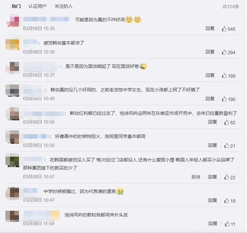 显然,韩妆品牌并没有抓住这个新风口,及时创新变革,如此之下,韩妆市场流失也是情理之中。就如悦诗风吟近日推出新logo,意图转型为功效性护肤品牌,但网友对此却一致表示“不如不改”,可以说悦诗风吟未抓对转型时机,有些为时已晚。