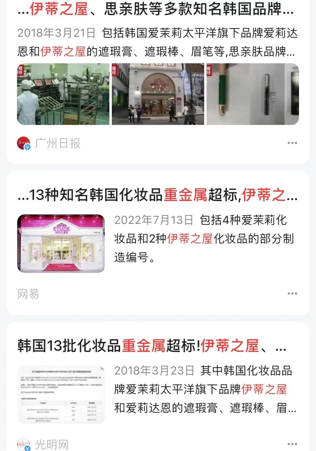 此外,伊蒂之屋在2018年被韩联社曝光“重金属超标”,这让更名不久的伊蒂之屋再遭“重创”。