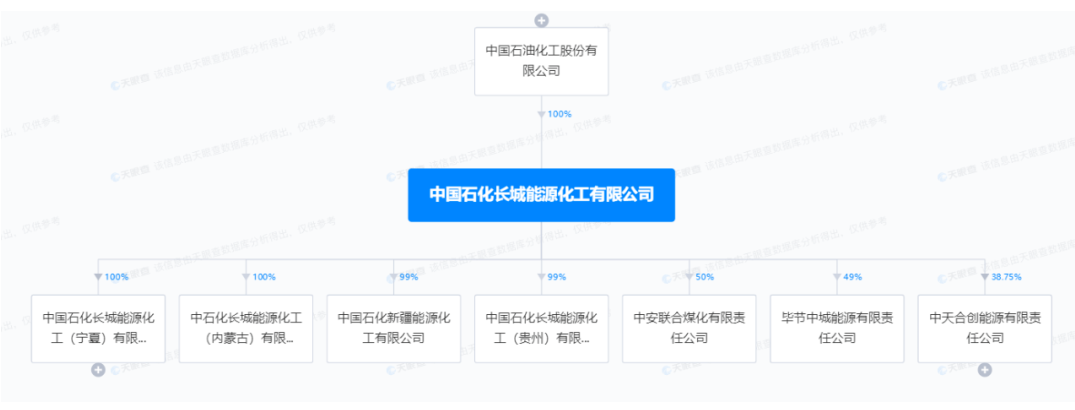 上述提到的内蒙古长城能化,则由中国石化长城能源化工有限公司(以下简称长城能化)全资控股。