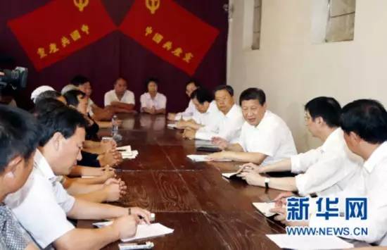 ▲2013年7月11日至12日,中共中央总书记、国家主席、中央军委主席习近平在河北省调研指导党的群众路线教育实践活动。这是习近平在平山县西柏坡九月会议旧址同县乡村干部、老党员和群众代表座谈。新华社记者 鞠鹏 摄