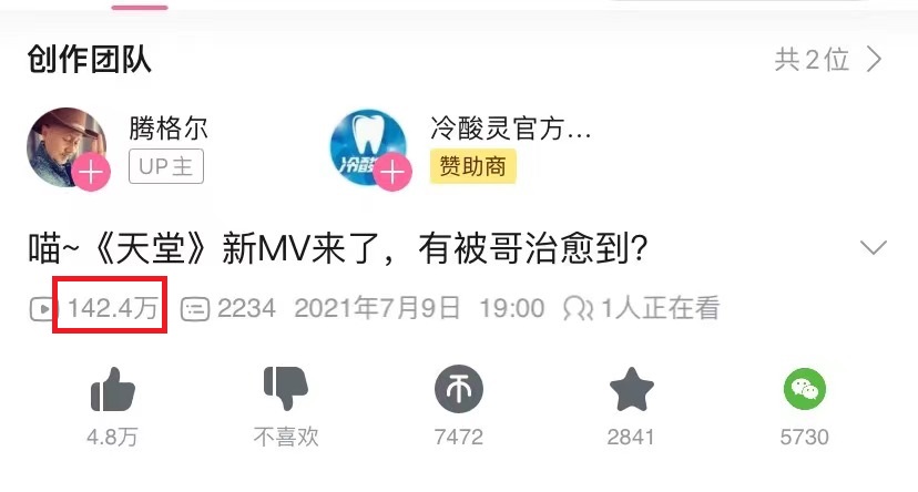 冷酸灵虽然是中国最早的国产牙膏品牌之一,但在年轻群体中的认知度不够,缺少话题性,去年,冷酸灵携手品牌新晋治愈大使腾格尔,带来一支“软”核版魔性MV《天堂》“杀疯了”。