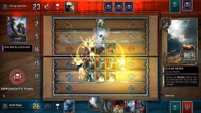 技能变更:间谍、诱饵等“巫师版”较强势的卡牌不同程度被削,天气牌在负面效果之外,也会对部分单位产生增益。