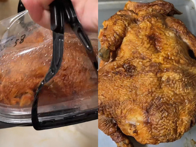 烤鸡从冰箱拿出来解冻,林青从朋友口中得知,为了尝鲜,她早从一周前就开始排号预定,原价39.8的烤鸡被她用58从代购手里全款拿下。