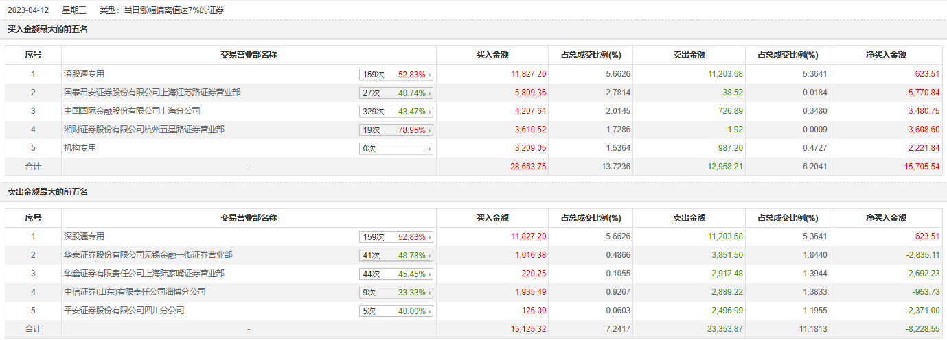 具体来看,机构买入3209.05万元,卖出987.2万元,合计净买入2221.84万元。此外,知名游资现身龙虎榜,深股通专用、章盟主(国泰君安证券上海江苏路证券营业部)分别买入1.18亿元、5809.36万元;深股通专用、华泰证券无锡金融一街证券营业部分别卖出1.12亿元、3851.50万元。
