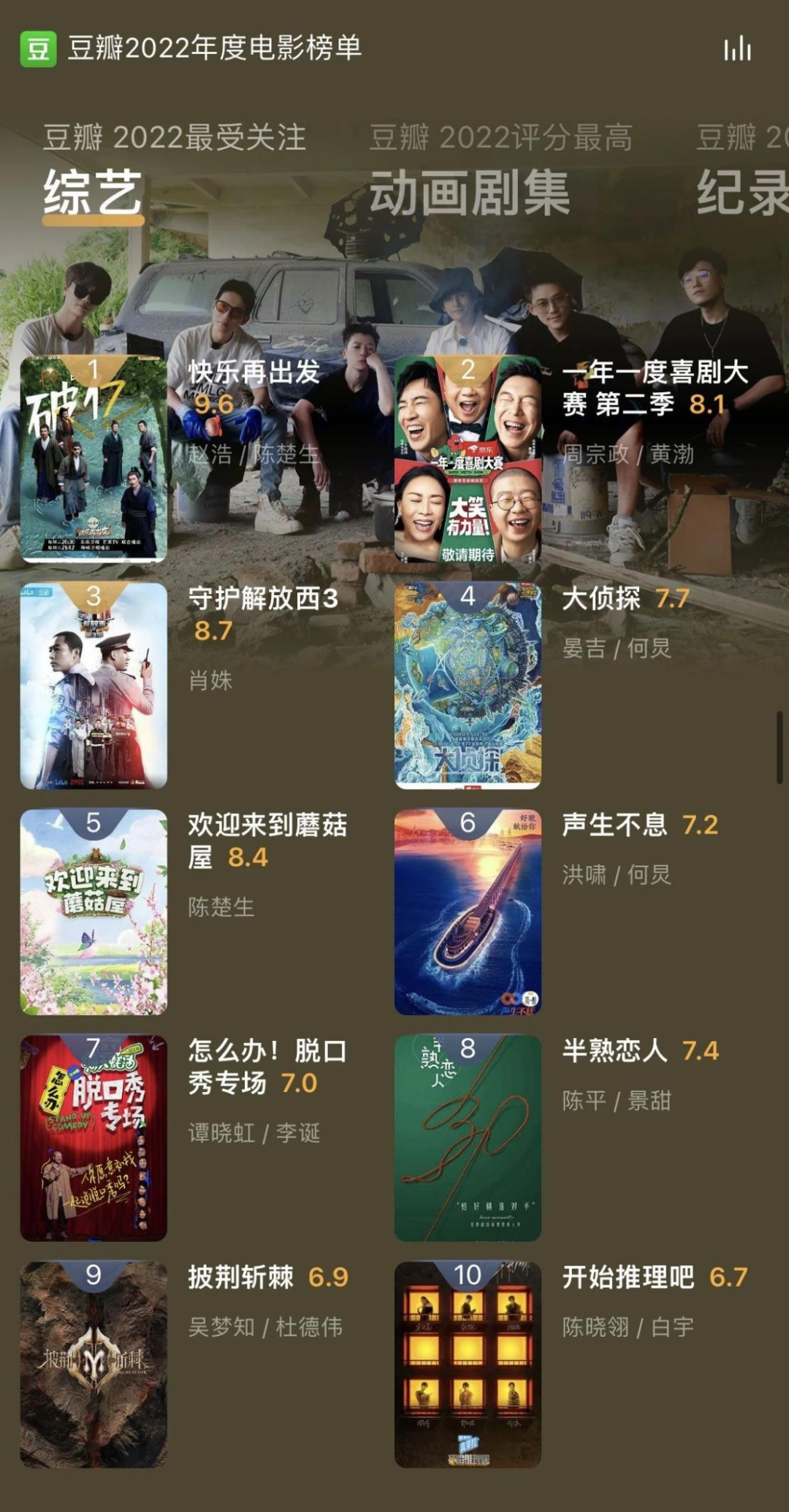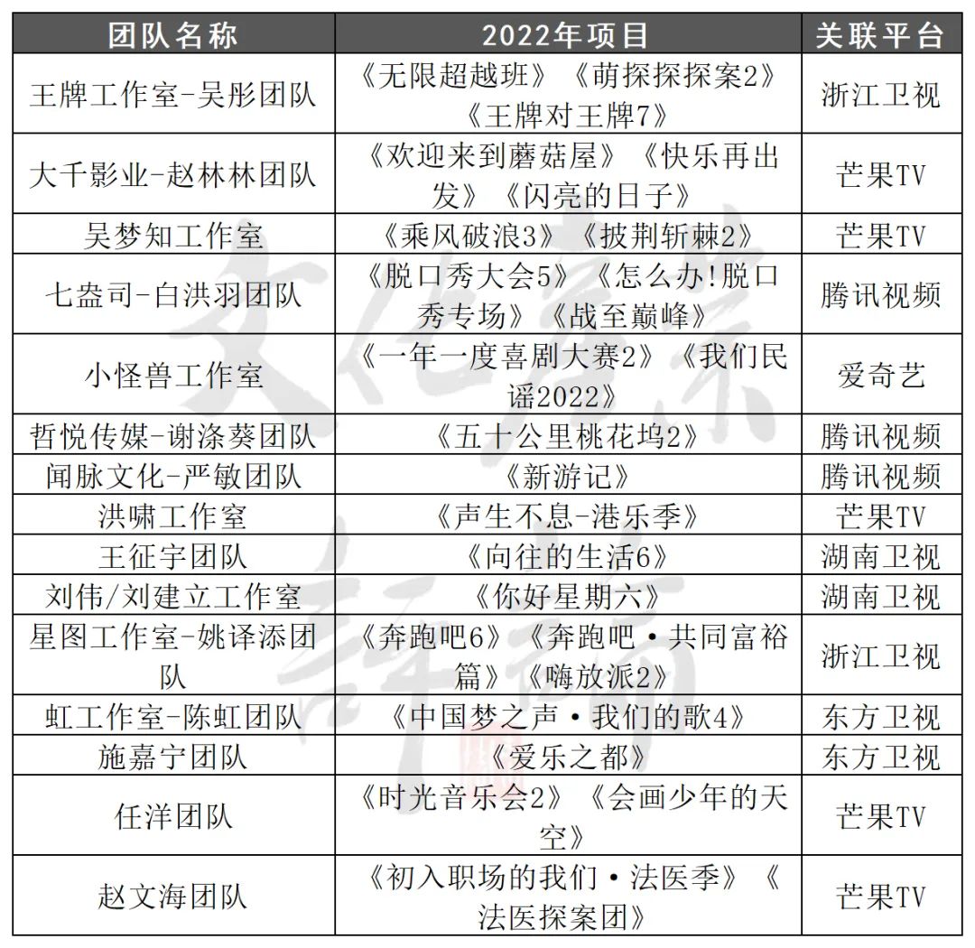 △2022表现突出的综艺PD团队 来源:网络