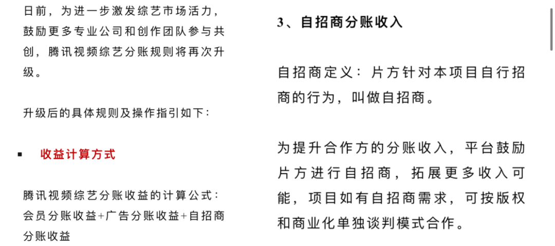 腾讯视频把「自招商分账收入」写入最新分账政策,其实传递了一个鲜明信号,toC和toB模式并不是你死我亡的关系,招商和分账完全可以双轨并行,