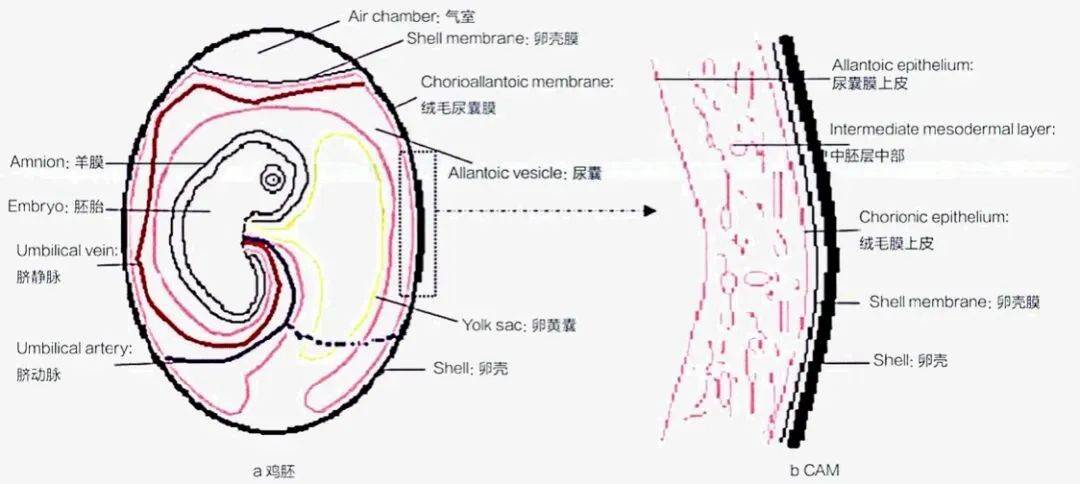 这类试验是利用鸡胚绒毛膜尿囊膜(chicken chorioallantoic menbrane,CAM)与人结膜相似的特点开发的替代试验,以CAM为替代材料研究化妆品的眼刺激性。