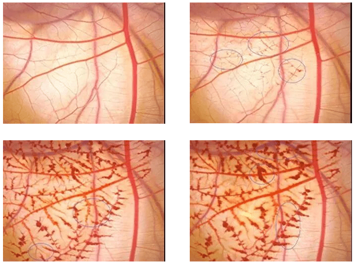 以0.3 ml受试物直接加至第10天鸡胚气室底部的CAM,观察出血、血管溶解和凝血(大中血管内血栓形成或鸡胚蛋白混浊)等终点,计算刺激评分(irritation score. IS)