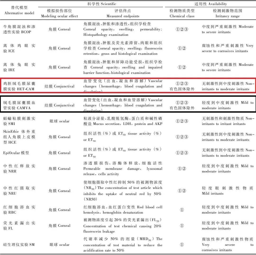 用CAM方法评估特定种类化学品眼刺激性的试验都显示了较满意结果。如Budai等用HET-CAM对6种杀虫剂的眼刺激性评估结果与Draize试验结果有很好相关性,仅在刺激分级上有所不同。