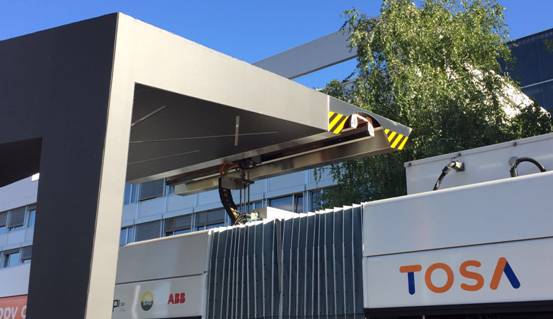 “TOSA的优势是,利用乘客上下车的时间充电,节省电车在终点站的充电时间,从而提高车辆使用效率,商业经济性更高;同时,一辆TOSA电车每年能减少1000吨二氧化碳排放,更加环保。”华纳说。