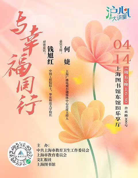 本周五晚开启的首场系列活动,将重点聚焦“幸福”二字,由特邀嘉宾——中国工程院院士、华东师范大学校长钱旭红以“与幸福同行”为主题,分享他的所思所想。讲座由知名主持人何婕主持。