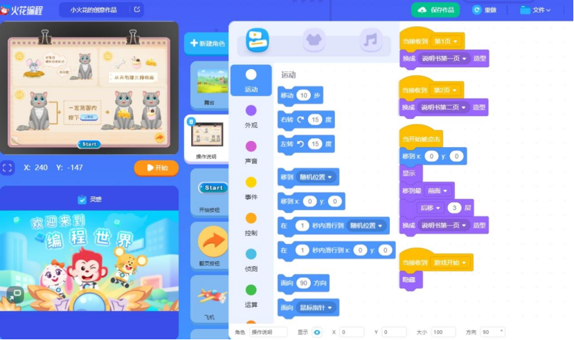 火花编程还有一个特殊的环节——自由创作。“自由创作的核心是在提升思维能力之上,提升孩子的创造力。”彭程说道。