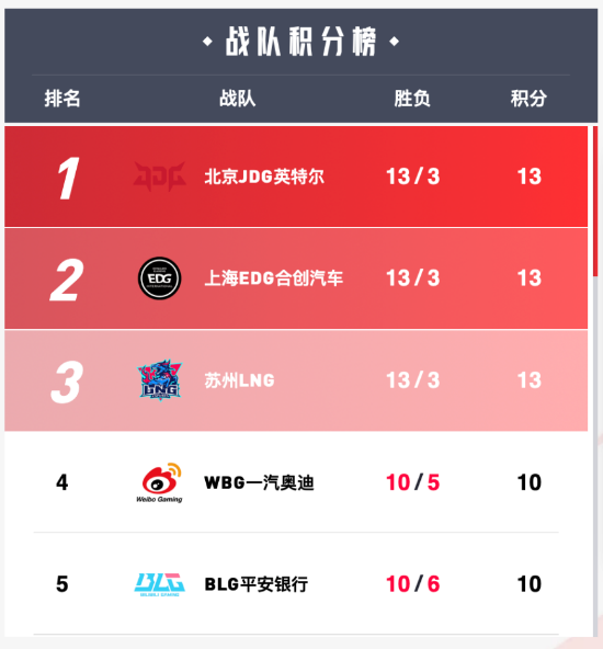2023年英雄联盟职业联赛春季赛排名,来源:英雄联盟官网