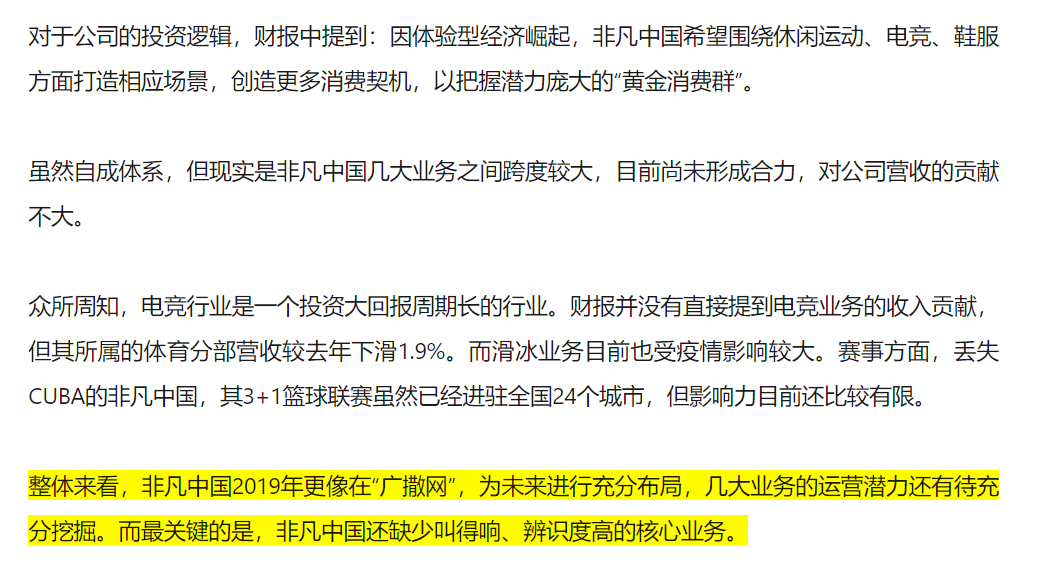 非凡中国的体育园、滑冰场、电竞俱乐部等业务尽管丰富多彩,但是这些细分赛道本身市场规模和增长潜力都相对有限,收购行为背后,更为凸显的是对品牌宣传价值。