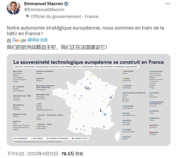 即便访问结束,马克龙也没有停止表达自己的想法。从12日到13日,平时不常发推特的马克龙连发五条推文,每条都涉及欧洲自主权。
