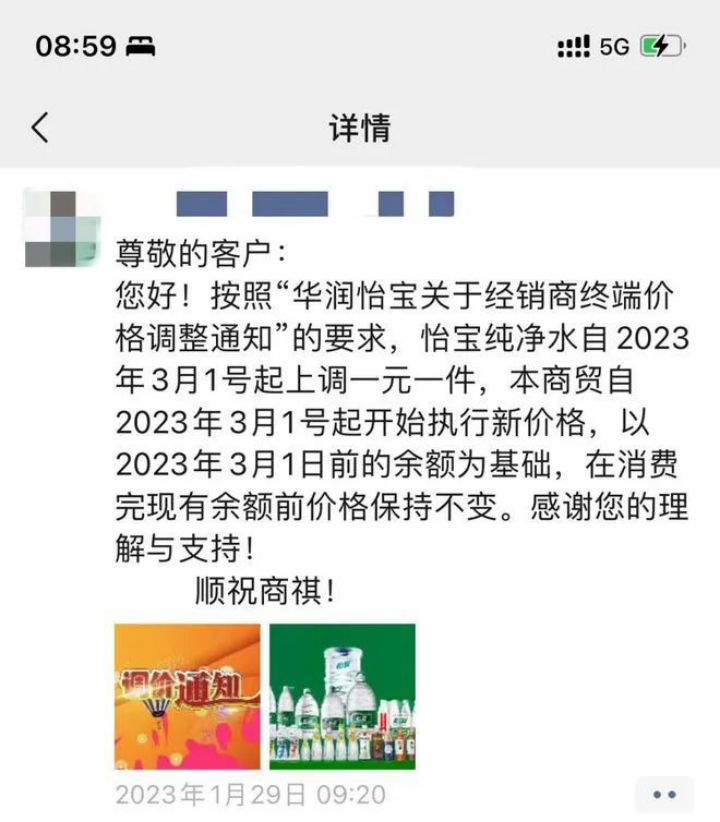 紧接着就到了3月开始的怡宝上调经销商终端售价的调价决策,这至少包含了两个信息: