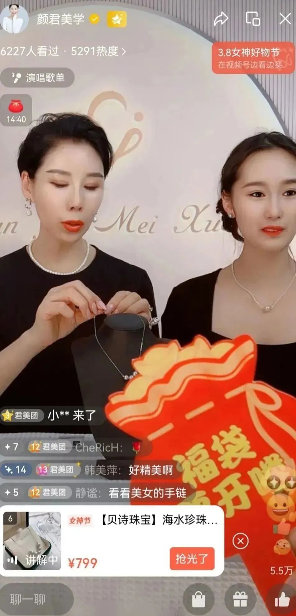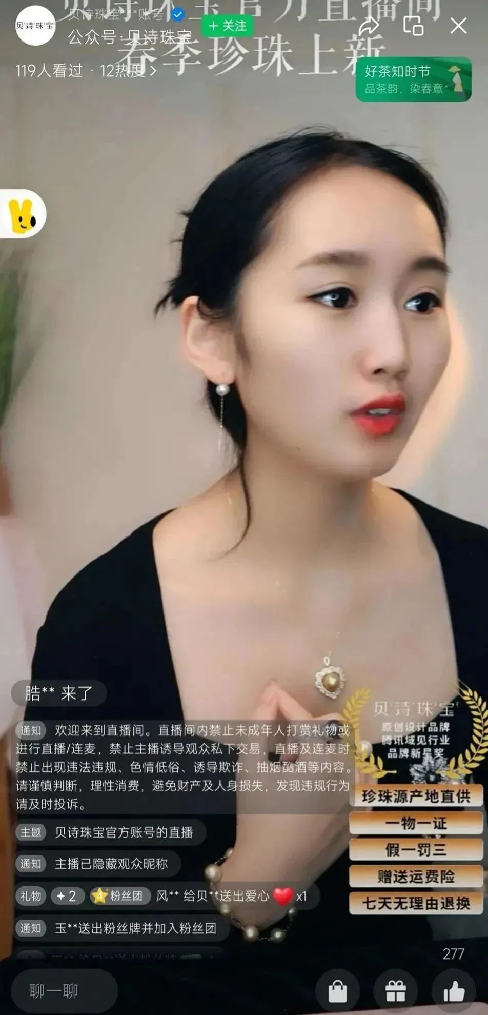 “视频号真的太香了!前晚我们和颜君美学(视频号穿搭博主)合作,一场直播销售额破百万。”贝诗珠宝创始人钟卫平兴奋地对「摩登消费」分享道,“在视频号,珠宝品牌的直播红利来了。”