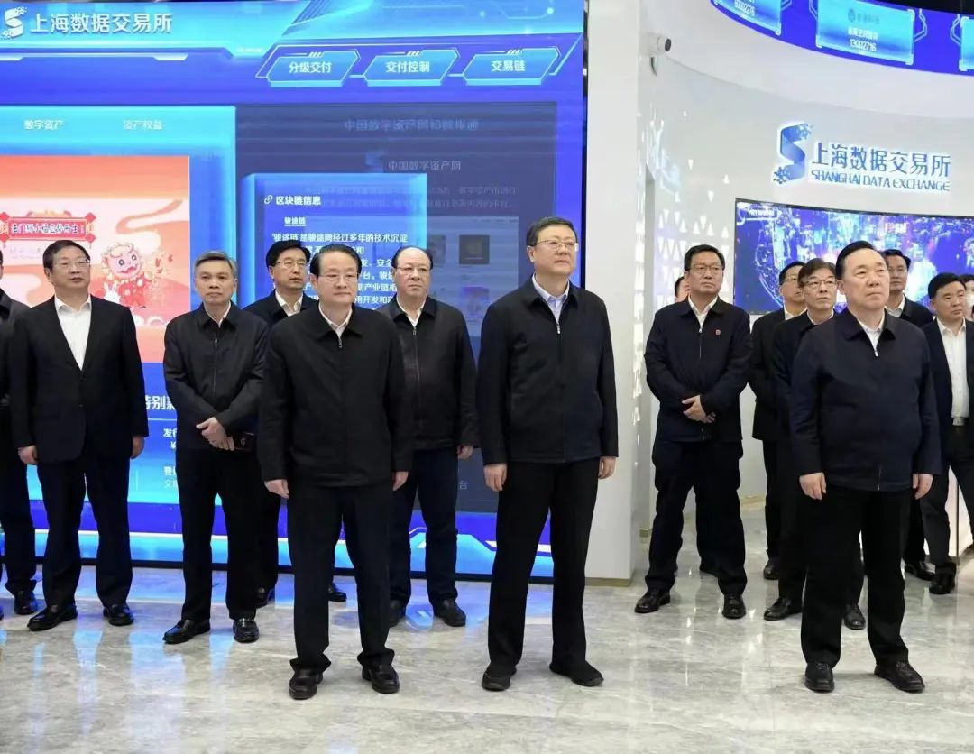 在上海数据交易所,浙江省党政代表团了解交易所打造全球数据要素配置的重要枢纽节点,推动数据要素流通、促进数字经济发展等工作介绍。当前,上海正在全力推动城市数字化转型,浙江把数字化改革作为全面深化改革总抓手。两地同志感到,围绕数字经济和数字化转型等,可以深入交流互鉴,各扬优势所长,共绘数字长三角美好未来。