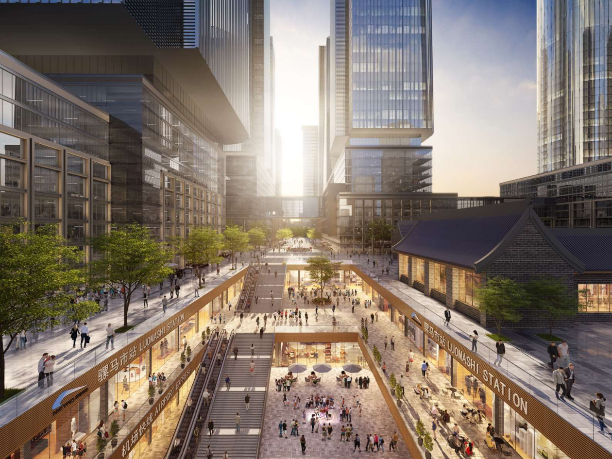 西御河项目紧邻在建的摩诃池生态公园以及全市唯一四线交汇点——骡马市地铁站,未来将是成都唯一直通两大国际机场和三大铁路枢纽(成都东站、北站、西站)的四线换乘站。项目拟对标上海、深圳等超塔项目,拟建设超50万㎡的商业综合体,除商业裙房外,还将建设1栋超300米的摩天大楼,以及3栋约160米到250米的塔楼组成错落有致的城市天际线。