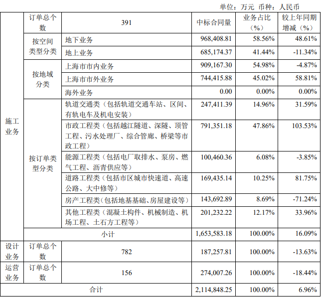 隧道股份:一季度合同中标额合计211.48亿元,同比涨6.96%