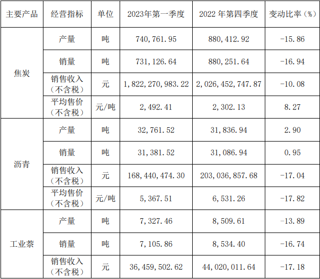 山西焦化4月14日公告,公司一季度焦炭销售73.11万吨,销售收入18.22亿元,较去年第四季度环比下降10.08%。2023年第一季度主要产品焦炭产量比2022年第四季度产量有所减少,主要原因是:自2023年开始,公司焦炭生产模式为全干熄焦模式,2022年为干熄焦、湿熄焦混合模式,两种不同模式下,产量存在一定差异。