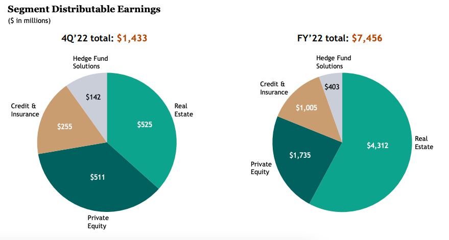 房地产业务也成为黑石最赚钱业务——2022年,黑石可分配收益一共是74.56亿美元,其中来自房地产板块的是43.12亿美元,占比达到58%。也就是说,黑石超一半收入来自房地产业务。